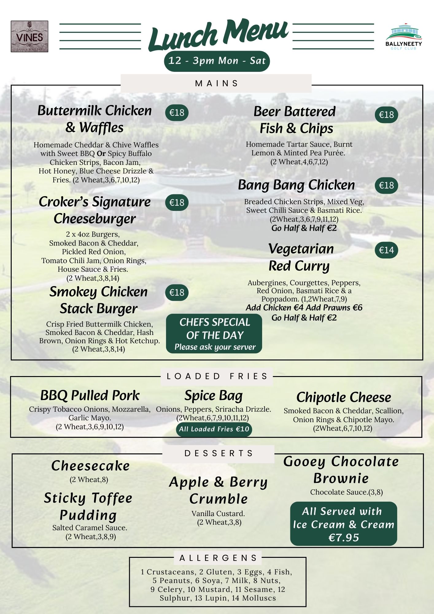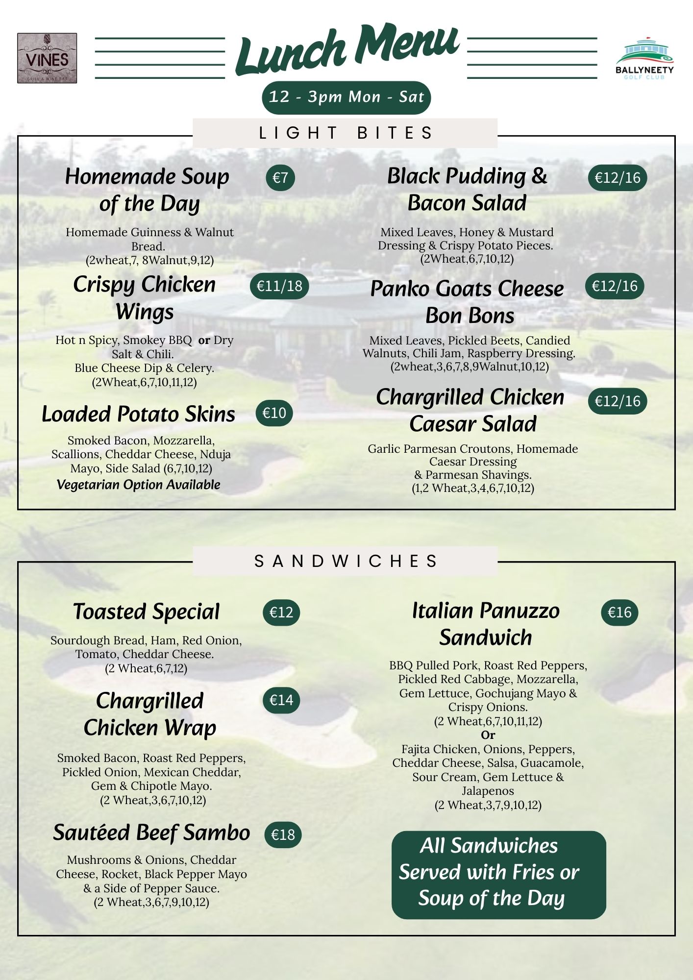 *Please note bar closing times is dependant on business levels after the above times*